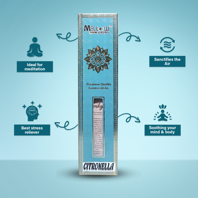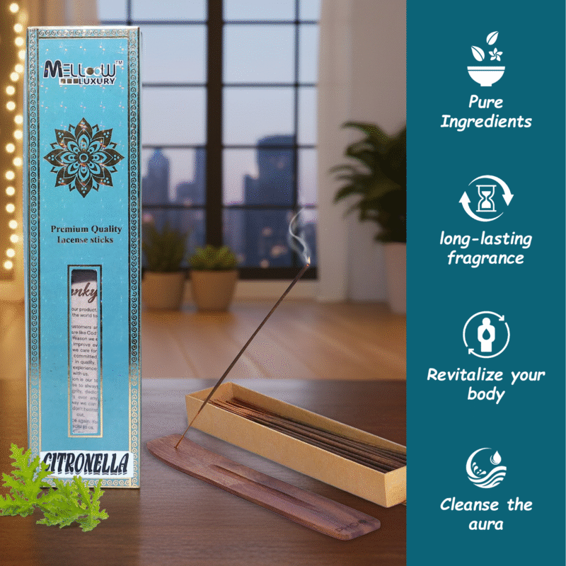 MELLOOW LUXURY Citronella Incense Sticks – 50 Natural Organic Sticks for Fresh Ambiance