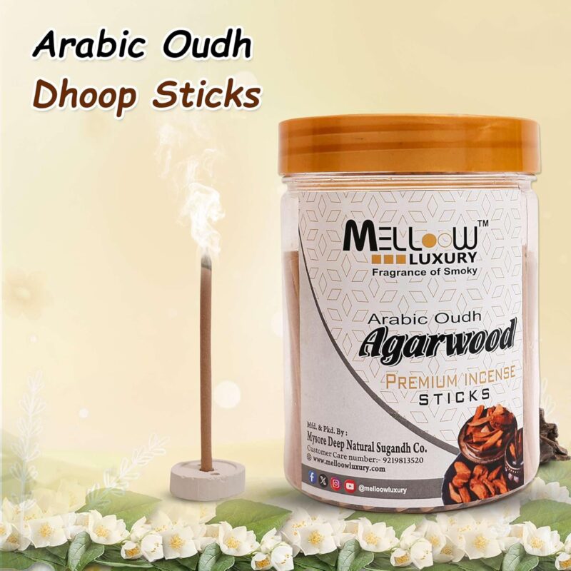 Melloow Luxury Arabic Oudh Organic Dhoop Sticks – 50pcs with Free Dhoop Stand | For Pooja & Meditation