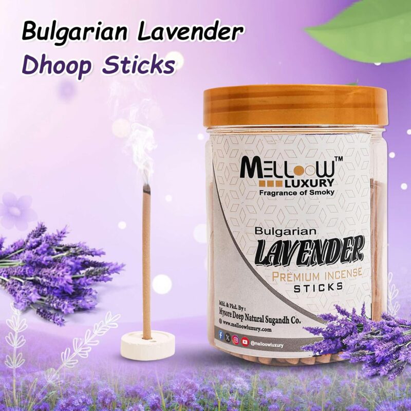 MELLOOW LUXURY France Lavender Dhoop Sticks for Pooja & Meditation – 50pcs + free dhoop stick Holder