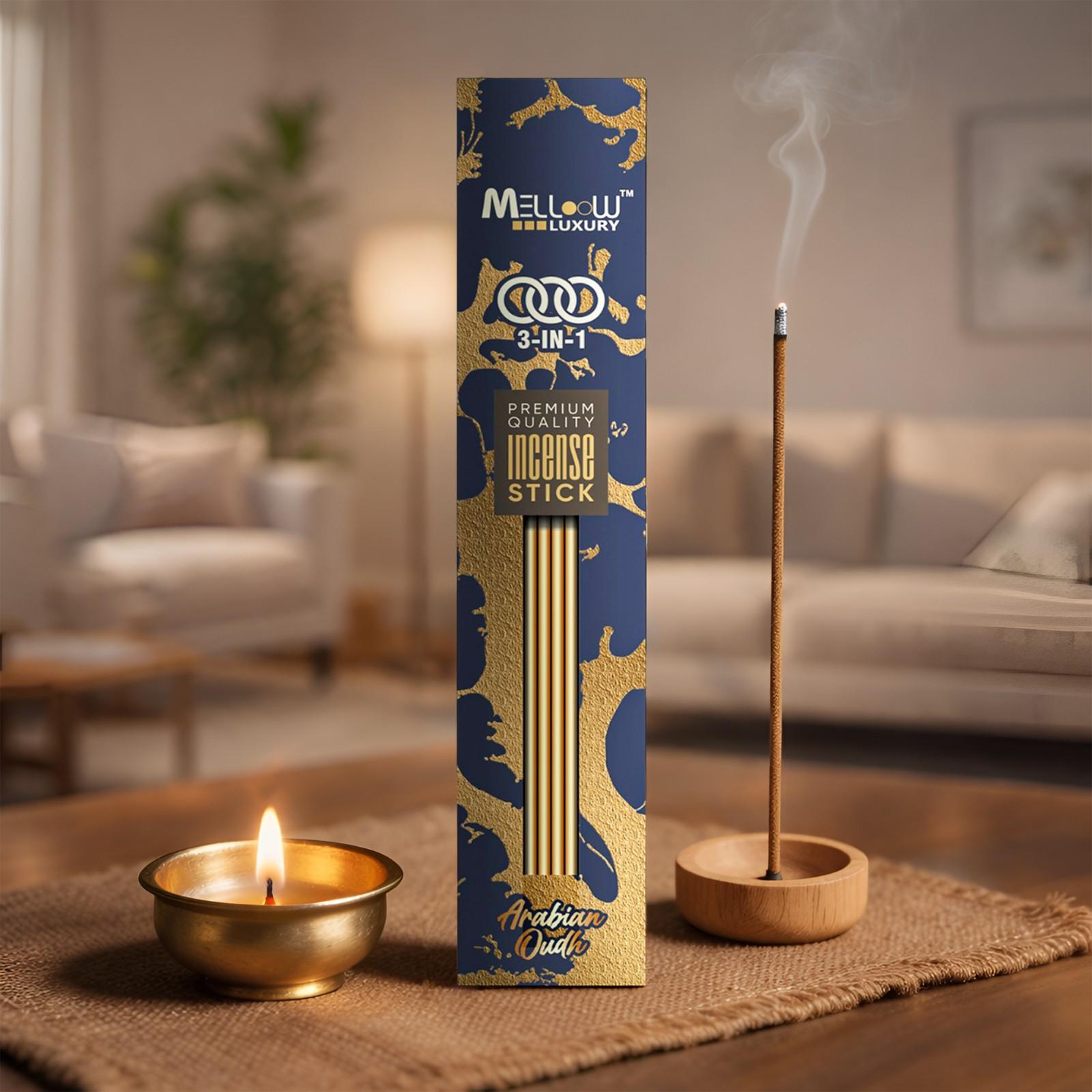 Experience the richness of oriental fragrances with this exclusive 3-in-1 Premium Incense Sticks Pack, featuring three captivating aromas — Arabian Bakhoor, Woody, and Arabian Oudh. Carefully crafted for long-lasting performance, this combo brings depth, warmth, and luxury into your home.
