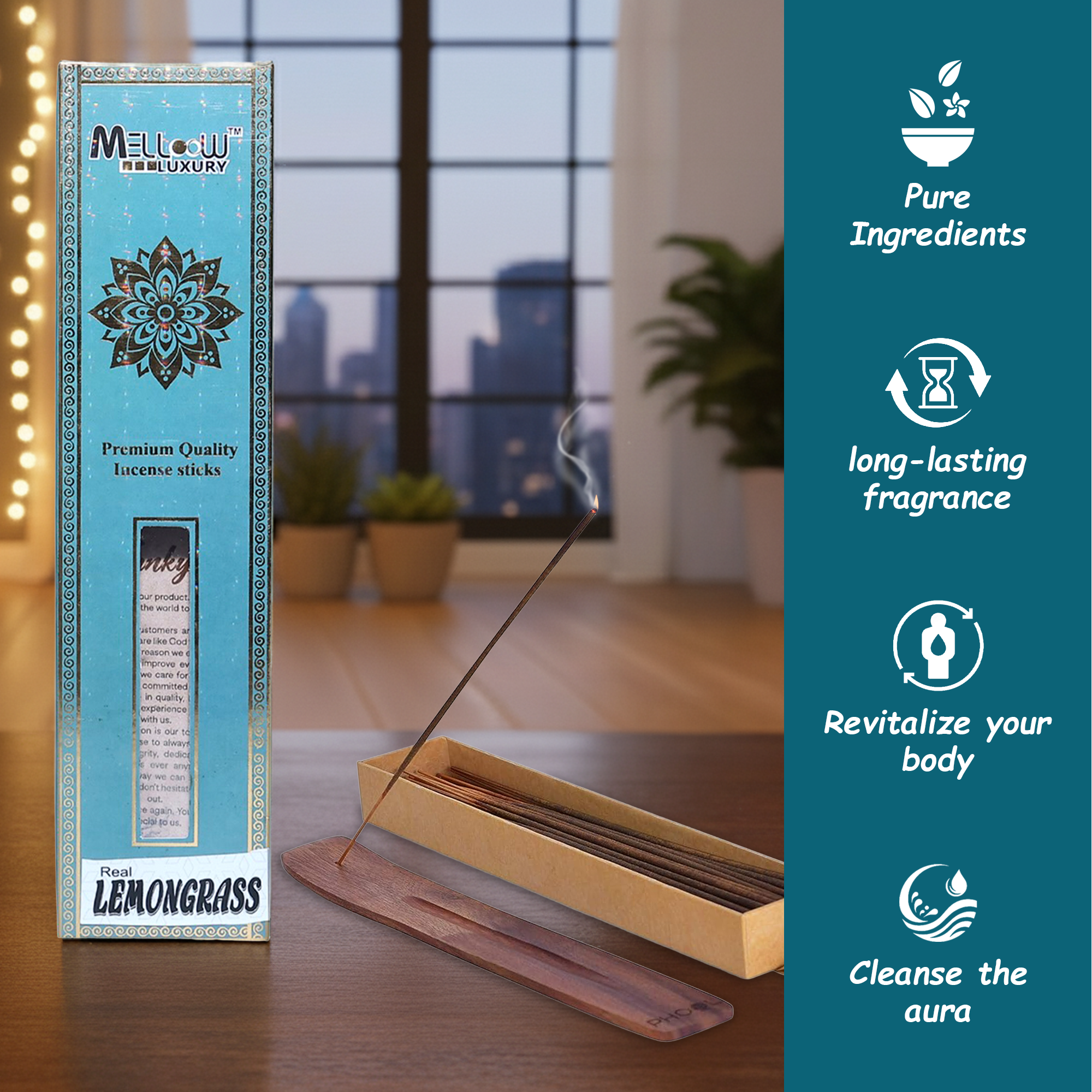 MELLOOW LUXURY Lemongrass Incense Sticks – 50 Organic Incense Sticks