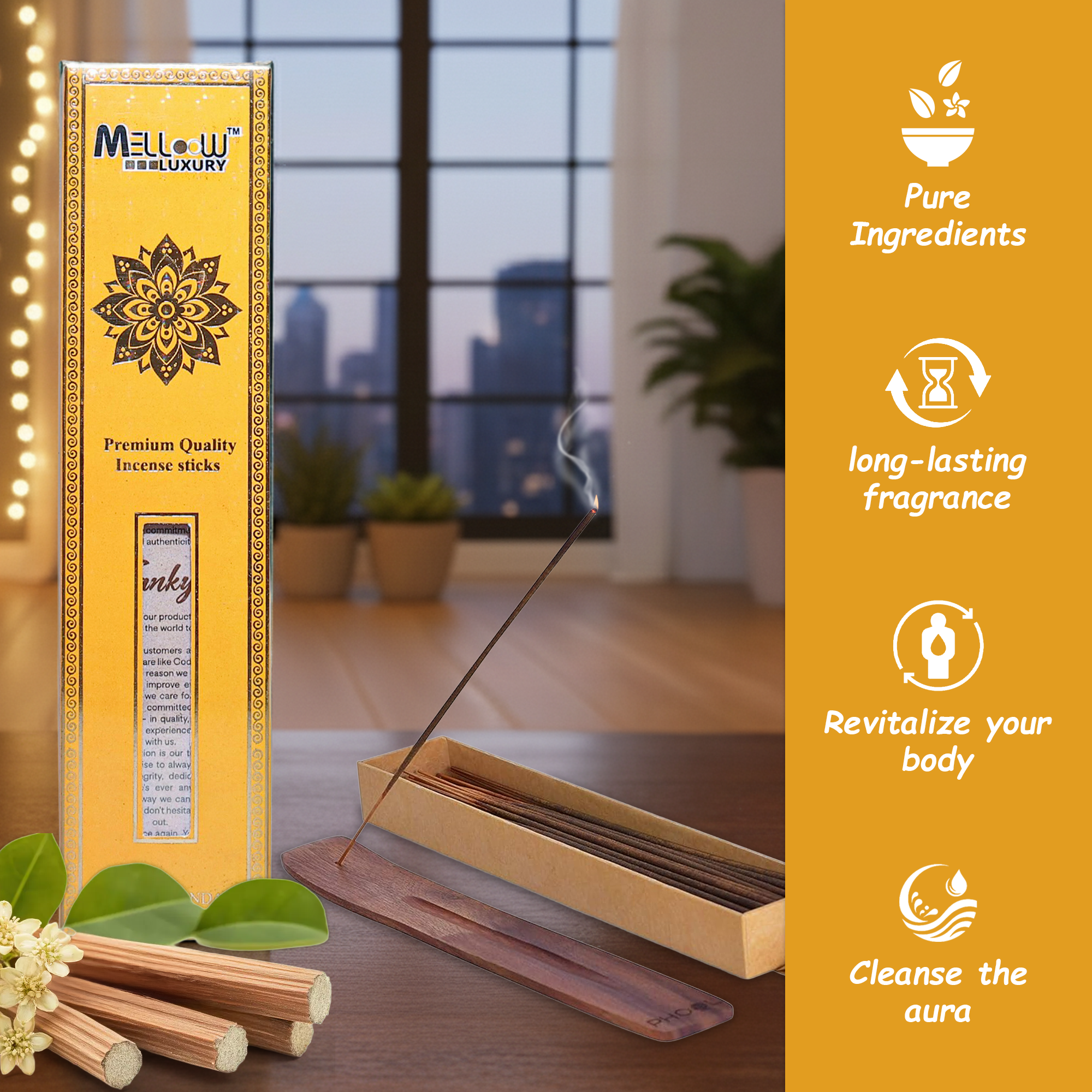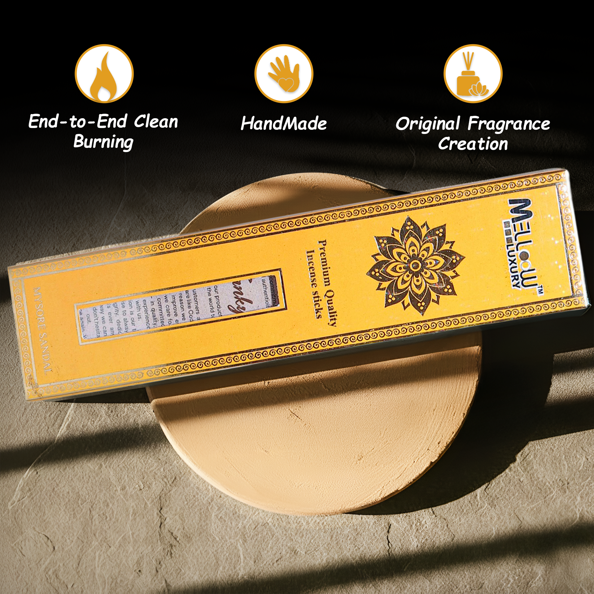 Transform your home and spiritual space with the divine scent of MELLOOW LUXURY Mysore Sandalwood Incense Sticks.