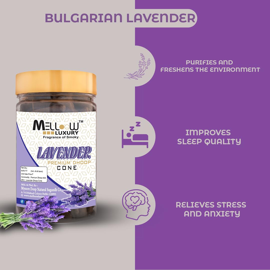 Transform your daily rituals with Melloow Luxury Bulgarian Lavender Dhoop Cones and enjoy the calming essence of nature in every cone.