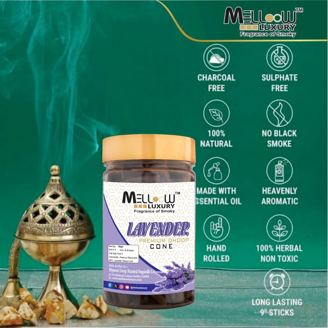 Immerse yourself in the calming and soothing aroma of Bulgarian Lavender with Melloow Luxury Premium Dhoop Cones. Crafted from 100% natural and organic ingredients, these cones are completely toxic-free and chemical-free, offering a safe and authentic incense experience.