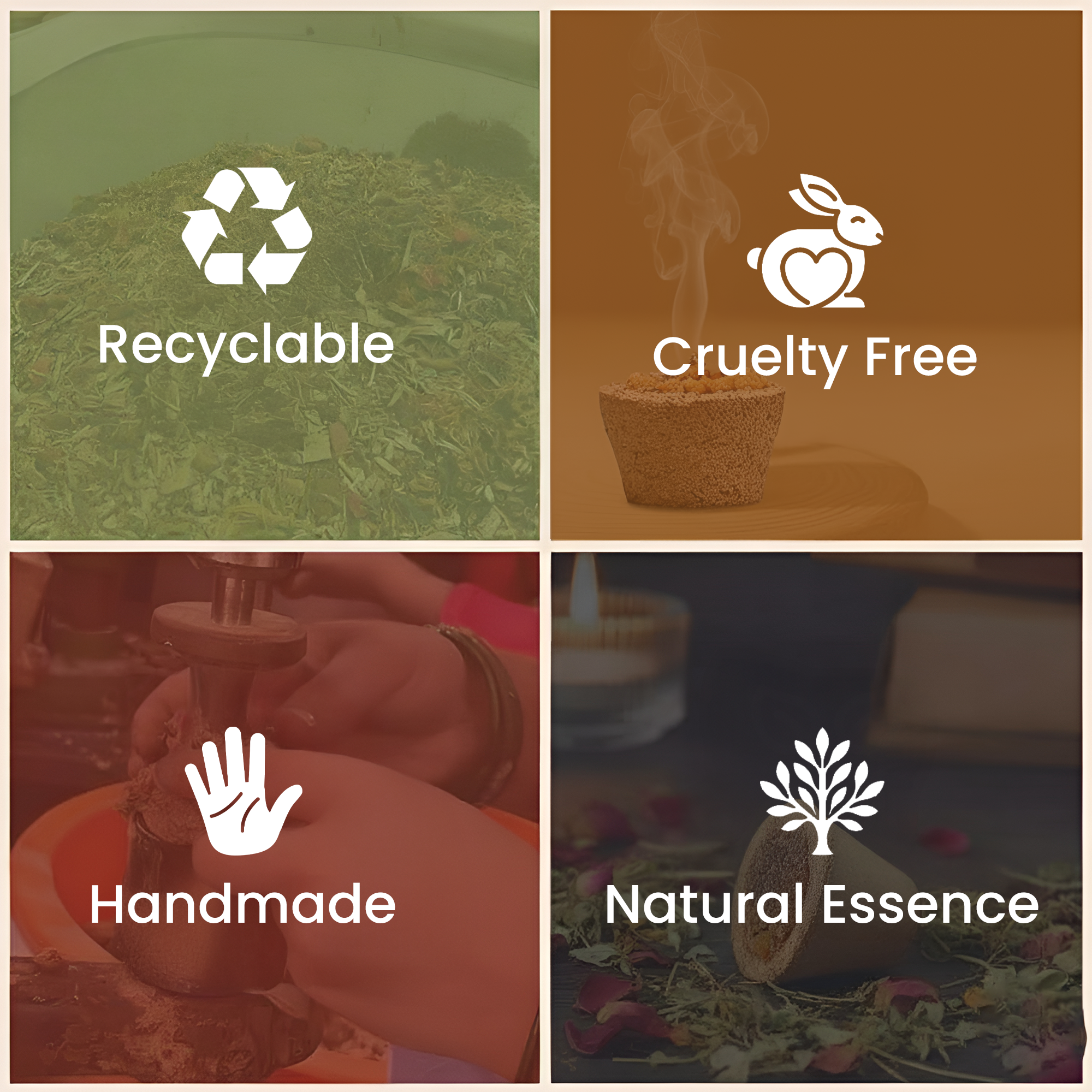 The Guggul fragrance promotes positivity and concentration, while Loban (benzoin resin) helps cleanse the environment and remove negative energies. Together, they create a perfect balance of serenity and purification — ideal for daily pooja, meditation, and home fragrance.