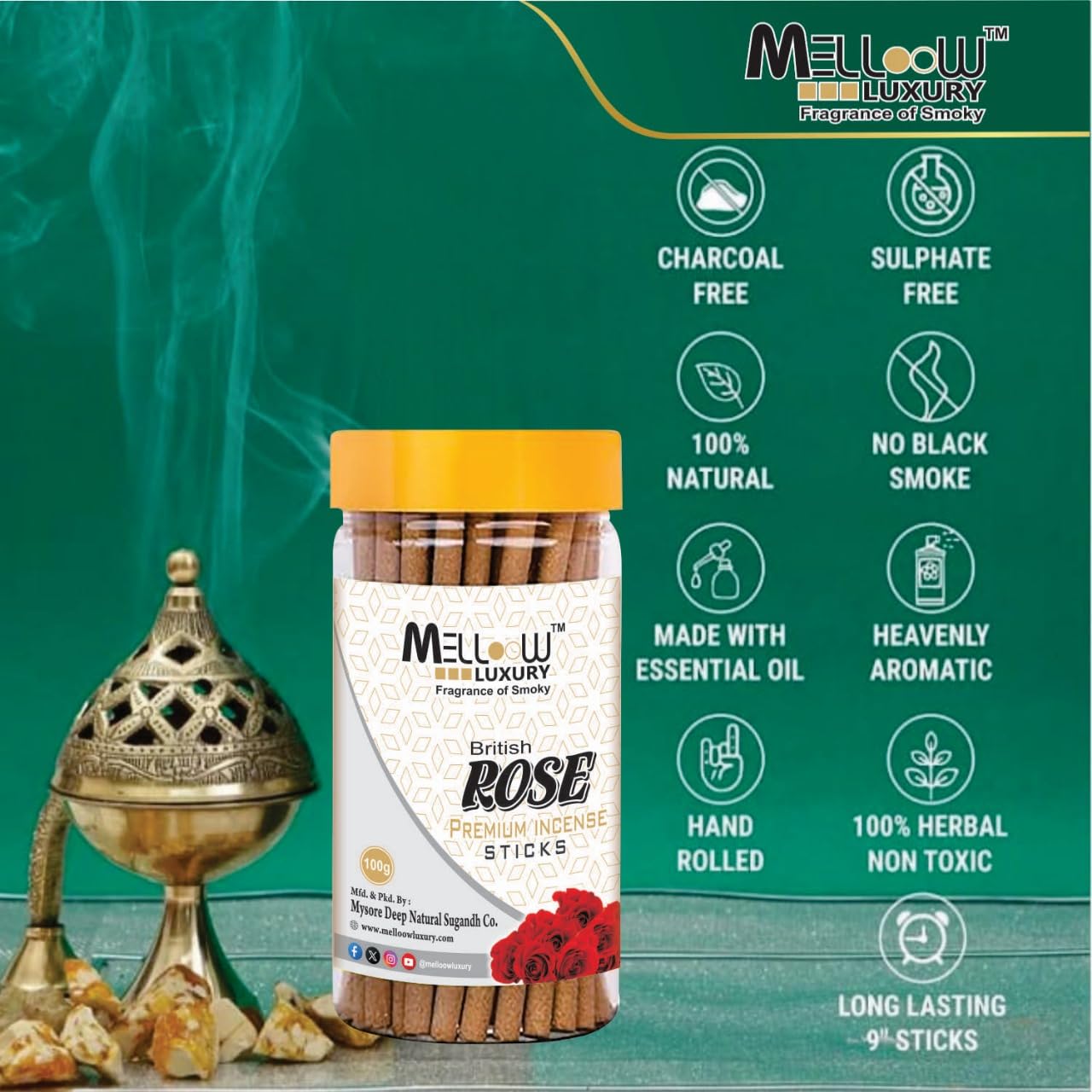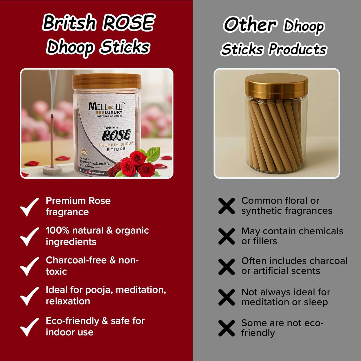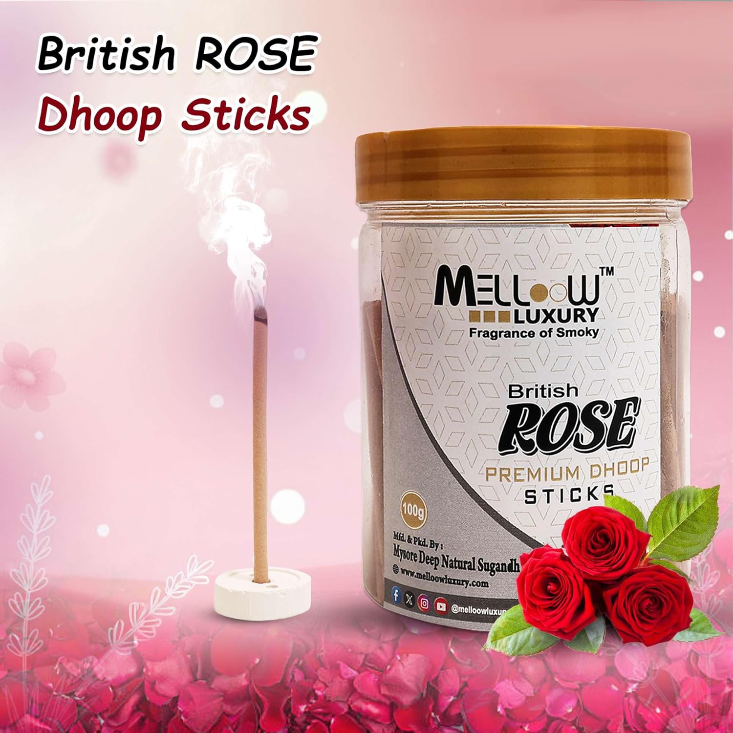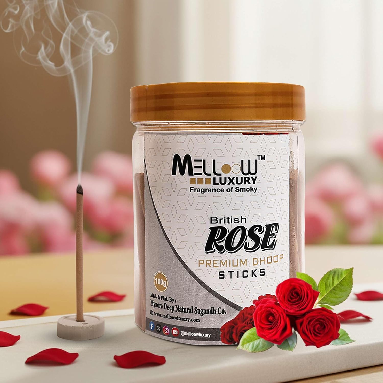 MELLOOW LUXURY Rose Dhoop Sticks – 50pcs + Free dhoop stick Stand