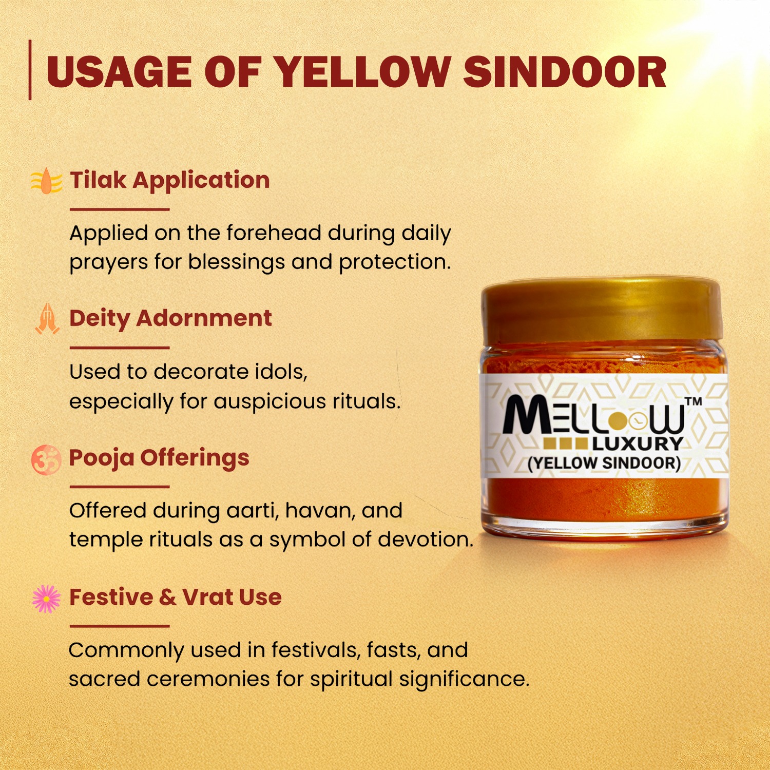 Ideal for daily pooja, tilak ceremonies, weddings, festivals, and temple offerings, this Yellow Sindoor preserves authenticity and tradition in every ritual.